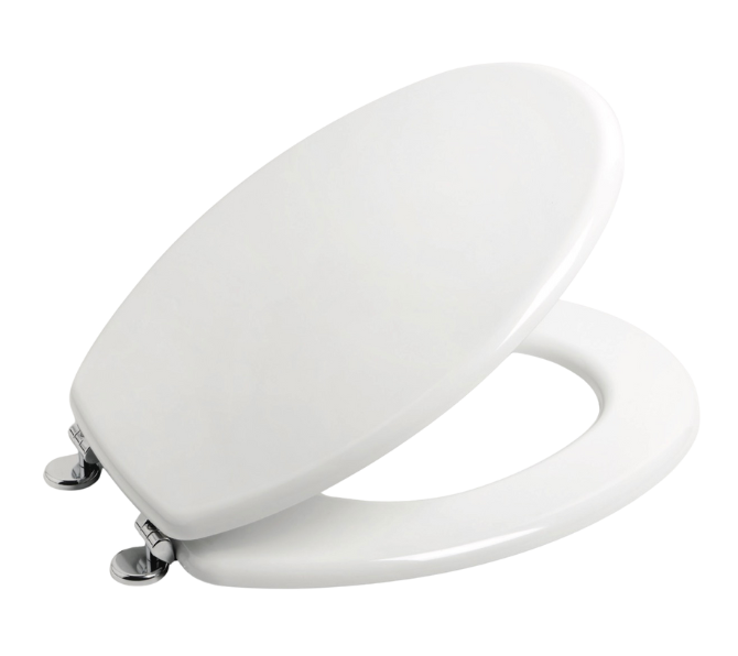 Cerniere in alzar cromato, resistenti alla corrosione e dotate di sistema di fissaggio eccentrico, regolabile per un montaggio perfetto sulla ceramica.